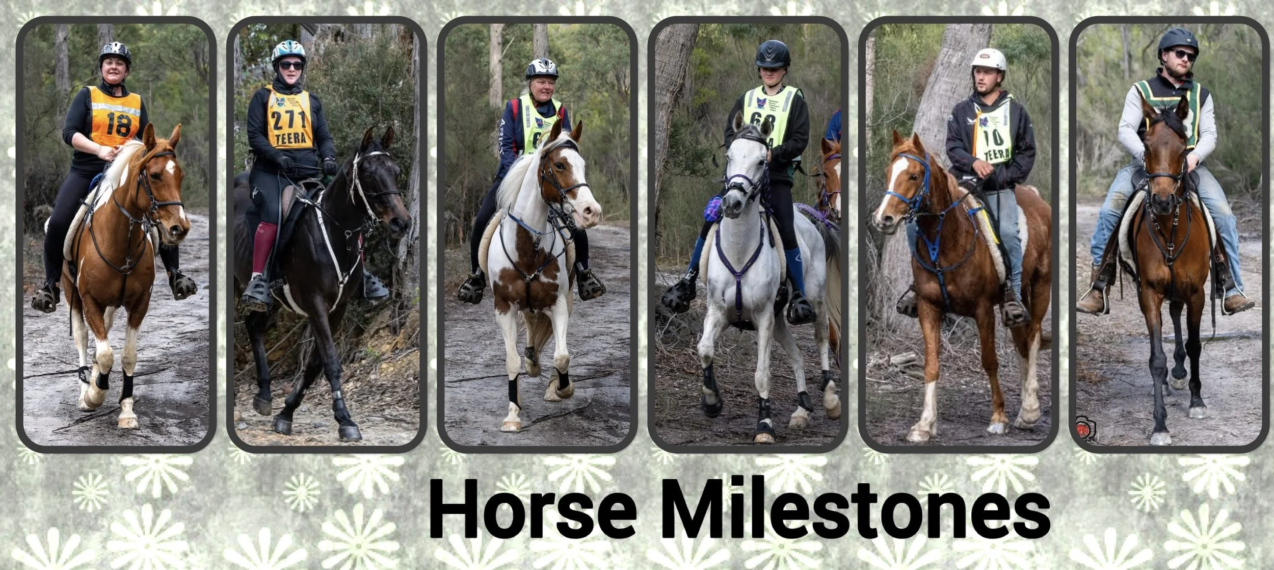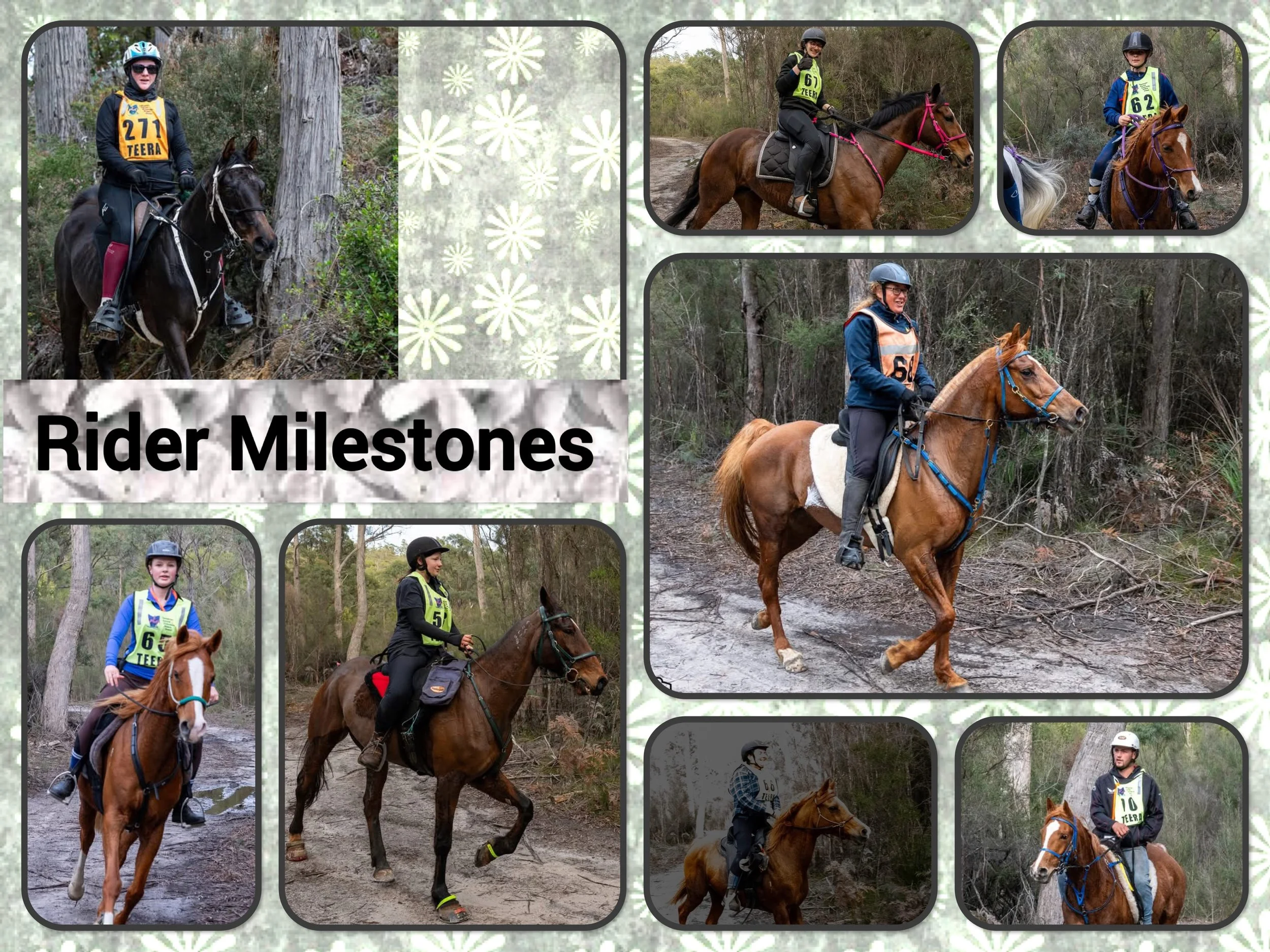 The track may have been tough but these horses still made milestone. Shardell Lady Lily qualifying. Brookleigh Finn first 80km. Faith, Mi Guardian Angel, Highland View Caspian & RA-Anji PJ completing their first rides. Photos: Roger Nichols